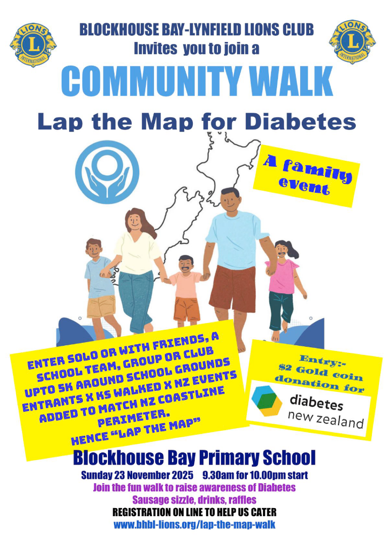 Lions Clubs across the country will be hosting family friendly walks and community events to promote a healthy lifestyle and raise awareness of diabetes in New Zealand.